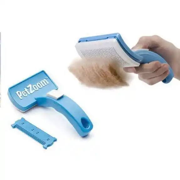El cepillo para mascotas PetZoom es el aliado perfecto para el cuidado de tu mascota. Este cepillo de alta calidad garantiza un aseo óptimo y eficiente. Sus cerdas de acero inoxidable son resistentes y duraderas, lo que permite un cepillado suave pero efectivo, eliminando el pelo suelto y evitando la formación de nudos. Este cepillo no solo es un quitapelos, sino que también ayuda a mantener la piel de tu mascota sana y brillante. Al cepillar a tu mascota regularmente con el Cepillo Peine Mascotas PetZoom, estarás estimulando la circulación sanguínea y distribuyendo los aceites naturales de su piel, lo que resultará en un pelaje más suave y brillante. PetZoom es fácil de usar y limpiar. Su diseño ergonómico permite un agarre cómodo y seguro, lo que facilita el cepillado. Además, gracias a su sistema de limpieza automática, solo necesitas presionar un botón para retirar el pelo acumulado en las cerdas. PetZoom es una herramienta esencial para el cuidado de tu mascota. Su calidad, durabilidad y eficiencia lo convierten en una inversión inteligente para mantener a tu mascota feliz y saludable. Medidas: 18x10cm