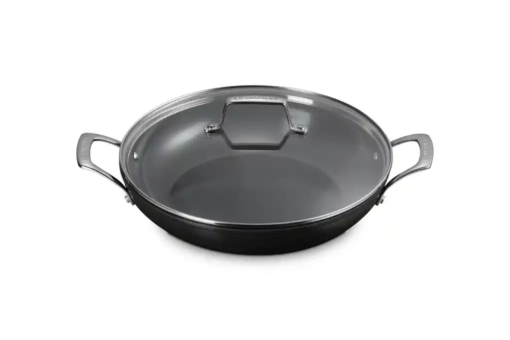 Fabricado en aluminio forjado revestido en cerámica antiadherente, libre de PFAS, que ofrece un rendimiento superior y una cocción uniforme en todo tipo de fuentes de calor. Limpieza super facil sin esfuerzo, compatible con lavavajillas. Soporta temperaturas de hasta 260°C. Garantía de 10 años.