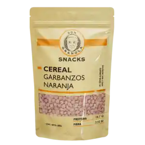 Cereal preparado en base a garbanzos, libre de gluten y vegano, sabor a naranja