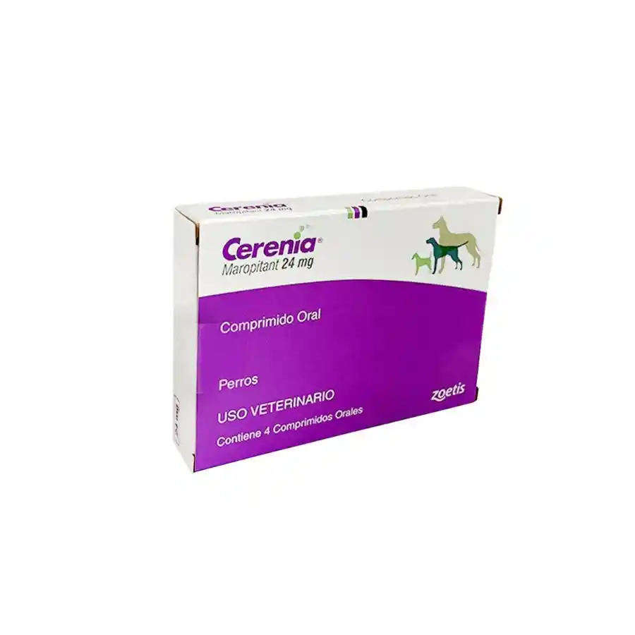 Se ha demostrado que Cerenia comprimidos es eficaz en el tratamiento de la emesis, sin embargo, cuando los vómitos son muy frecuentes, Cerenia administrado por vía oral no puede absorberse antes de que tenga lugar el siguiente vómito. Formatos: 24mg y 60mg FORMA FARMACÉUTICA: Comprimido, de color naranja pálido. Los comprimidos tienen una línea marcada que permite dividirlos por la mitad, con las letras “MPT” y cifras que indican la cantidad de maropitant en una cara, el reverso está en blanco. Indicaciones de uso, especificando las especies de destino: • Para la prevención de las náuseas inducidas por quimioterapia. • Para la prevención del vómito inducido por mareo en el viaje • Para la prevención y el tratamiento del vómito, en combinación con Cerenia Solución Inyectable y con otras medidas complementarias. Advertencias especiales para cada especie de destino: Los vómitos pueden estar asociados a procesos graves, muy debilitantes, incluyendo obstrucciones gastrointestinales, por lo tanto, debe realizarse un diagnóstico apropiado. Se ha demostrado que Cerenia comprimidos es eficaz en el tratamiento de la emesis, sin embargo, cuando los vómitos son muy frecuentes, Cerenia administrado por vía oral no puede absorberse antes de que tenga lugar el siguiente vómito. Por lo tanto, se recomienda iniciar el tratamiento de la emesis con Cerenia Solución Inyectable. La buena práctica veterinaria indica que los antieméticos deben usarse junto con otras medidas veterinarias y complementarias, tales como un control de la dieta y una terapia de reposición de fluidos mientras se tratan las causas subyacentes de los vómitos. La seguridad de maropitant en tratamientos de más de 5 días no se ha investigado en la especie de destino (es decir, perros jóvenes que sufren enteritis viral). En caso de tratamiento por un periodo mayor de 5 días, se debe implementar como necesario un seguimiento cuidadoso de los posibles efectos adversos.