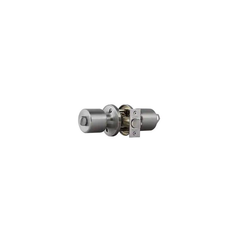 Cerradura tubular antimicrobiana de cuerpo de acero para dormitorios y oficinas, pomo exterior con llave, pomo interior con seguro y acabado de acero inoxidable.