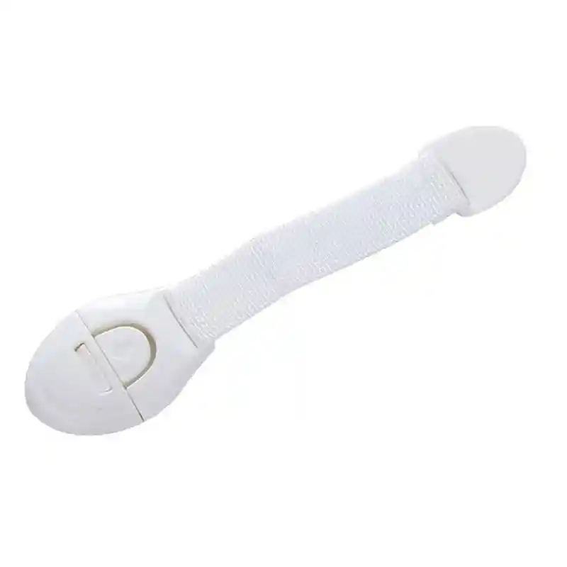 Descripción: Tiene almohadillas adhesivas para que se adhieren de manera fuerte a cualquier superficie. Está hecho con un material que Resiste el uso diario con correa de género que se adapta al diseño de la cajonera o puerta donde desee colocar.. Su diseño neutro que se adapta a la decoración de su hogar. Éstas cerraduras proporcionan una protección fiable para su hijo. Especificaciones: Material: Plástico más Tela. Color: Blanco . Dimensiones: 20 x5 cm aprox. Contiene: 01 Cerradura de Tela