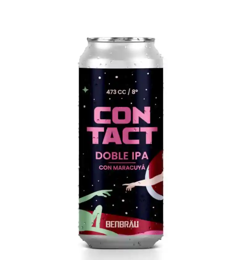 Cerveza Benbrau Contact 473cc - Doble IPA con adiciones de Maracuyá Cerveza artesanal chilena - Doble IPA con adiciones de Maracuyá. Muy lupulada con alto contenido alcohólico que complementa perfecto el amargor de las IPAS y la acidez del maracuyá💋. EXTRATERRESTIAL BEER🍻!