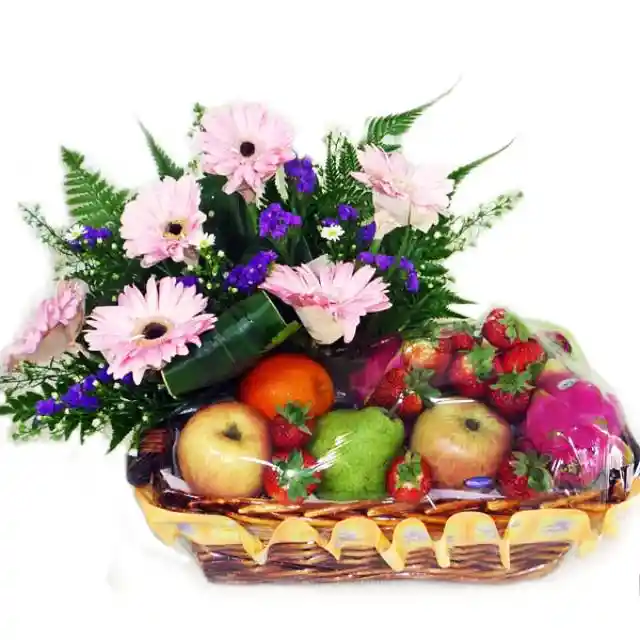 Cesta de Gerberas y fina selección Frutas de Temporada.