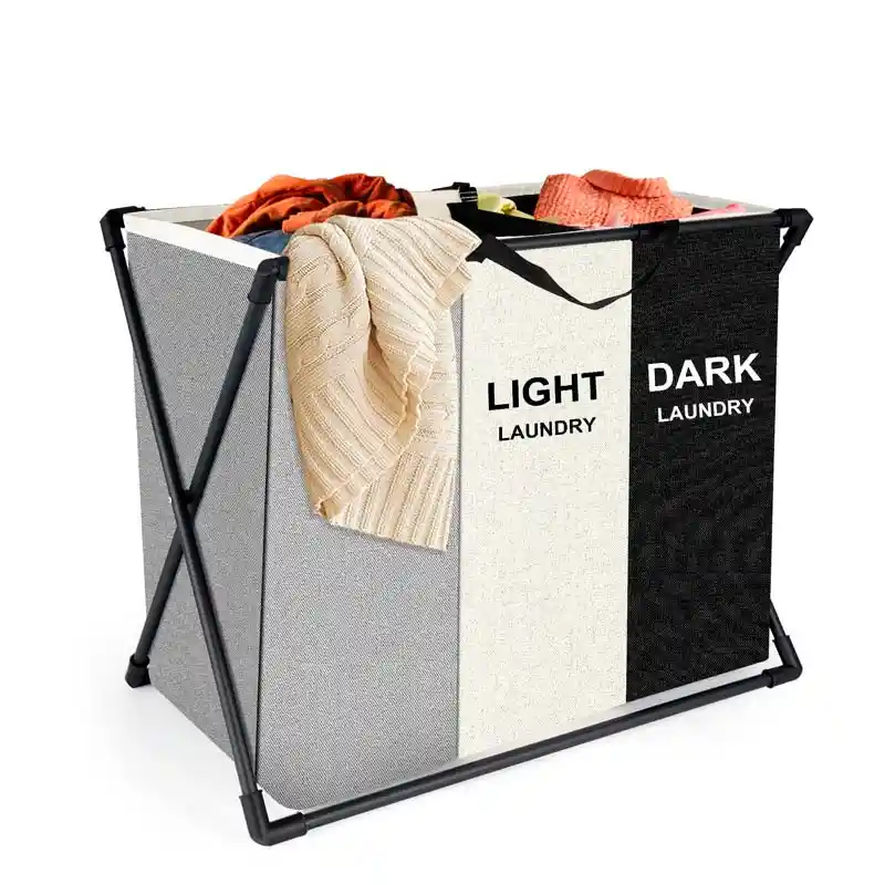 ¿Le trae problemas organizar la ropa sucia? La mayoría de las veces se dejan por cualquier sitio y afean su hogar. Ahora tiene la oportunidad obtener una cesta para lavar ropa y así poder organizarlas. ¡Y esta cesta de doble compartimiento es la gran opción para para usted! Como añadido el canasto es un cesto ropa sucia plegable lo que hace que ahorre espacio cuando no lo esté usando. Con este producto podrá ordenar su ropa antes de lavarla. Tiene tres compartimientos, los cuales se separan en ropa blanca color y oscura. ¡Así podrá ordenar fácilmente la ropa sucia! CARACTERISTICAS Material: tela Oxford + aleación de aluminio Color: negro/gris oscuro/gris claro Características: plegable, respetuoso con el medio ambiente Cesto Plegable Ropa Sucia Canasto Con 3 Separaciones Cesto para Ropa Sucia 3 separaciones Medidas; 65cm x 56cm x 39cm 100% nuevo. Hecho de material oxford y Marco X de aleación de aluminio. Montaje fácil y sin herramientas. Bolsa de lavandería grande extraíble Es un magnífico diseño de lujo para una cesta de lavandería.