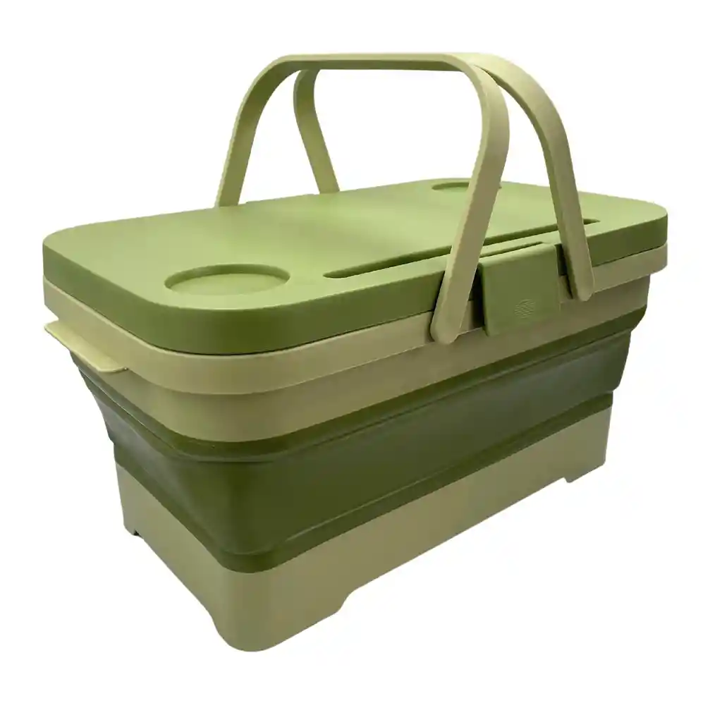 Cesta Plegable para Camping - Tu Compañera Perfecta para Aventuras al Aire Libre Si eres un amante de la naturaleza y disfrutas de emocionantes aventuras al aire libre, esta Cesta Plegable para Camping se convertirá en tu aliada esencial. disfruta esta cesta, mis experiencias de camping y picnics se han vuelto mucho más convenientes y organizadas. Aquí te presento algunas de las características clave que hacen de esta cesta una elección imprescindible: Diseño Plegable: La característica plegable de esta cesta la hace extremadamente conveniente. Se pliega de manera compacta cuando no la necesitas, lo que facilita su transporte y almacenamiento. Multifunción: Puedes Separar la tapa he usarla con mesa para sostener tu celular mientras comes y gracia a su posa vaso podrás disfrutar de tu experiencia de camping. Espacio Generoso: A pesar de su diseño compacto cuando está plegada, esta cesta ofrece un espacio generoso cuando se despliega, lo que te permite llevar alimentos, utensilios, bebidas y otros accesorios esenciales para tu aventura al aire libre. Material Duradero: Está fabricada con materiales resistentes y duraderos que garantizan su capacidad de soportar el uso rudo en entornos de camping. Es resistente al agua, lo que la hace perfecta para situaciones en las que pueda mojarse. Fácil de Transportar: La cesta cuenta con asas resistentes que facilitan su transporte, incluso cuando está cargada con objetos pesados. También es lo suficientemente ligera para llevarla cómodamente durante largas caminatas. Versatilidad: Esta cesta es versátil y se adapta a una variedad de actividades al aire libre, como camping, senderismo, picnics, pesca, y más. También es útil como cesta de almacenamiento en casa o en el automóvil. Fácil de Limpiar: La superficie de la cesta es fácil de limpiar y mantener, lo que permite una rápida y sencilla limpieza después de tus aventuras al aire libre. Organización: Los compartimentos y bolsillos adicionales te permiten organizar tus pertenencias de manera eficiente, lo que facilita encontrar lo que necesitas en todo momento. En resumen, esta Cesta Plegable para Camping es una inversión que hará que tus aventuras al aire libre sean más cómodas y organizadas. Su diseño portátil y duradero la convierten en una compañera esencial para cualquier entusiasta del camping. Si disfrutas de la naturaleza y la emoción de pasar tiempo al aire libre, no dejes pasar la oportunidad de adquirir esta cesta y hacer que tus experiencias sean aún más especiales. ¡Prepárate para la aventura con esta cesta práctica y versátil! Considerar: Alto: 23, 5 cm Largo: 46, 5cm Ancho: 22, 7 cm Capacidad: 18 L