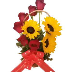 Cestita de 6 Rosas y 3 Girasoles