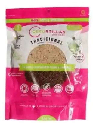 Menos de 35 carbs neto por Cetortilla. Flexibles veganas libres de glúten libres de lácteos versátiles producto con alimentos reales sabor Salado. Apta para dietas autoinmunes y dietas paleo.Harina de linaza oscura harina de coco agua aceite de coco psyllium sal de mar propinato de calcio. Libre de gluten. Calorías983 Kcal 6% Azúcares Totales 07 g 1% Grasas Totales 763 g 12% grasas Saturadas 44 g 25% Sodio 118 mg 10% Hidratos de carbono disponibles: 5.3 por tortilla producto puede venir congelado.