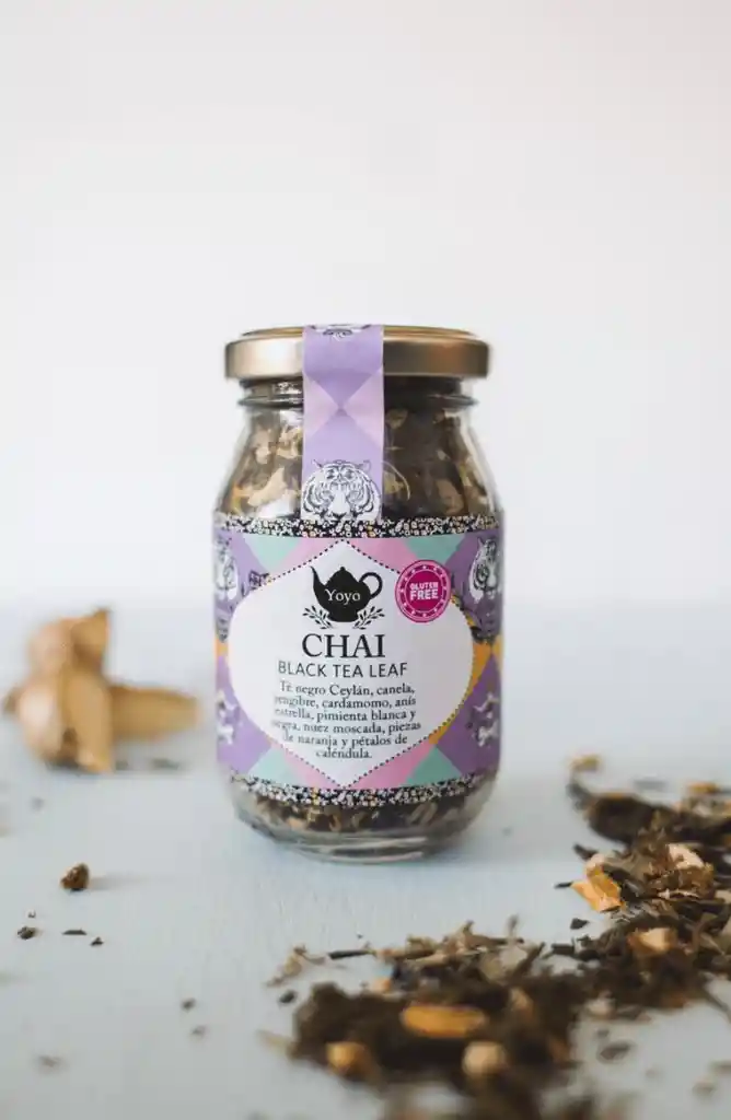 Infusión de té negro Ceylán, piezas de canela, jengibre, cardamomo, anís estrella, pimienta blanca y negra, nuez moscada, naranja y pétalos de caléndula. CONTIENE: 49 GRAMOS