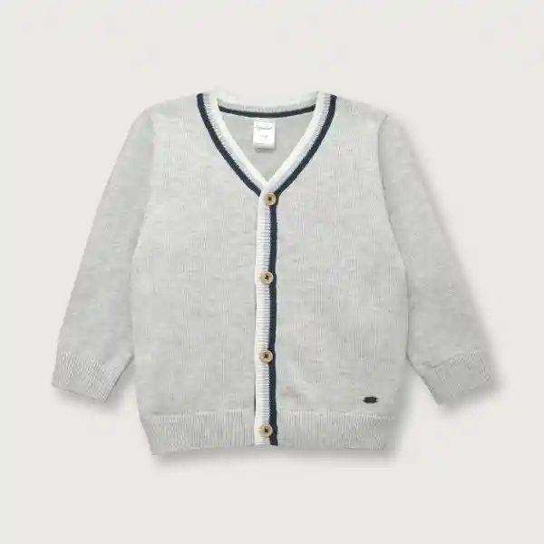Abertura Con Botones en Delantero Bordes Con Franjas Blanco y Marino y Bolsillos de Vivo en Delantero. Puños y Pretina de Mini Canalé Elásticado. Prenda Principalmente en Color Gris Melange.