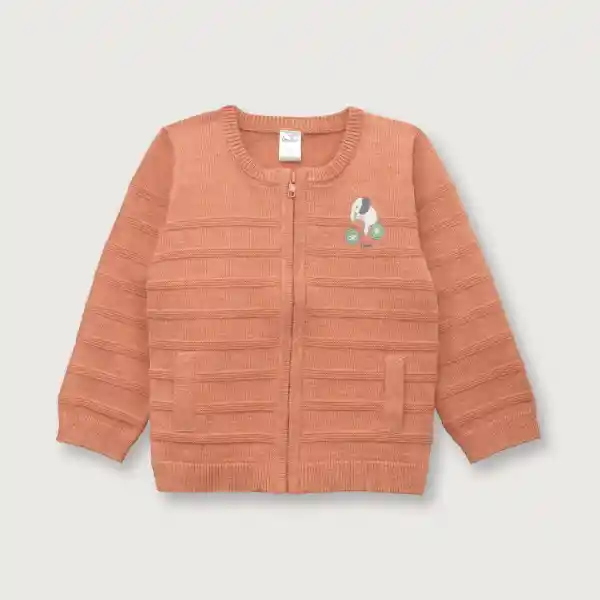 De Color Oxido Melange Con Cierre Bolsillos Falsos y Cuello Alto. Detalle de Bordado en el Costado Del Pecho.