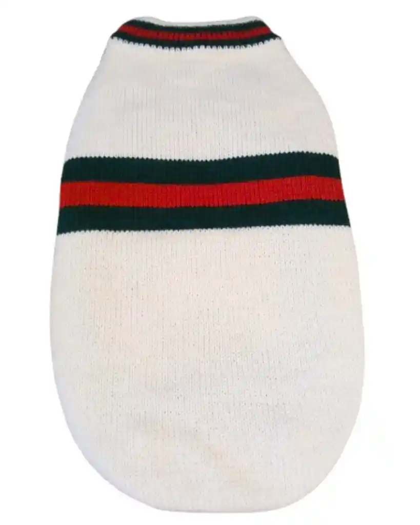 - Material: Tejido de punto de alta calidad - Fuerte retención de calor: el grosor moderado es adecuado para otoño e invierno u otros días fríos, lo que puede mantener a las mascotas calientes y prevenir enfermedades. - Diseño: Chaleco cuello Redondo, color Crema con Rayas Verde y Rojo Talla L: Largo: 40 cm Pecho: 40-45 cm Cuello: 30-34 cm