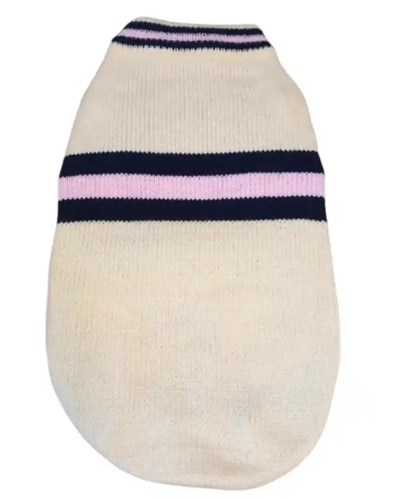 - Material: Tejido de punto de alta calidad - Fuerte retención de calor: el grosor moderado es adecuado para otoño e invierno u otros días fríos, lo que puede mantener a las mascotas calientes y prevenir enfermedades. - Diseño: Chaleco cuello Redondo, color Crema con Azul y Rosa Talla L: Largo: 40 cm Pecho: 40-45 cm Cuello: 30-34 cm