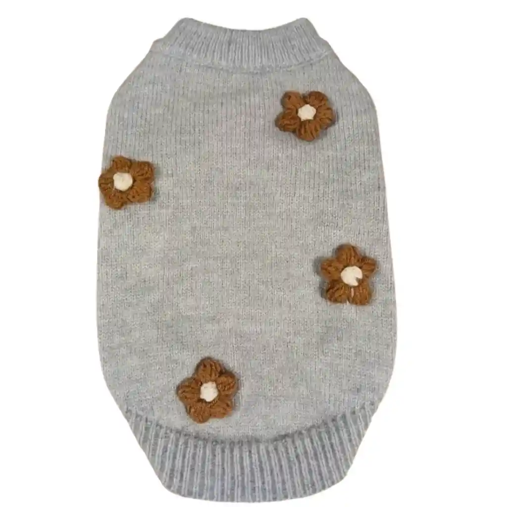 - Material: Tejido de punto de alta calidad - Fuerte retención de calor: el grosor moderado es adecuado para otoño e invierno u otros días fríos, lo que puede mantener a las mascotas calientes y prevenir enfermedades. - Color: Gris Claro - Diseño: Flores Bordadas Talla M: Largo: 30 cm Pecho: 38-42 cm Cuello: 22-26 cm