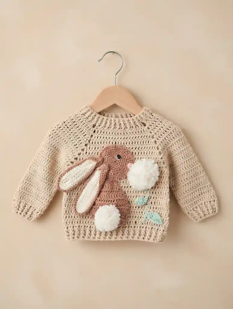Chaleco Conejo Crochet Beige Talla 0-6 Meses