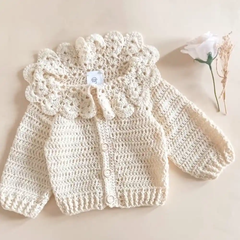 Chaleco Cuello Crochet Hueso Talla 0-6 Meses