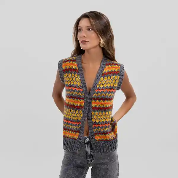 Este chaleco es la definición misma de la moda audaz y contemporánea. Su diseño único combina una paleta de colores llamativos y modernos, creando un impacto visual que seguramente destacará en cualquier ocasión.