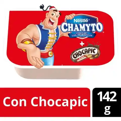 Es un yogur chamyto sabor natural endulzado con un delicioso cereal chocapic con sabor a chocolate. Los probióticos de chamyto viven hasta 6 horas fuera del refrigerador sin perder sus propiedades de protección, como fortalecer las defensas del organismo, regular el tránsito intestinal y mantener el equilibrio de la flora intestinal.