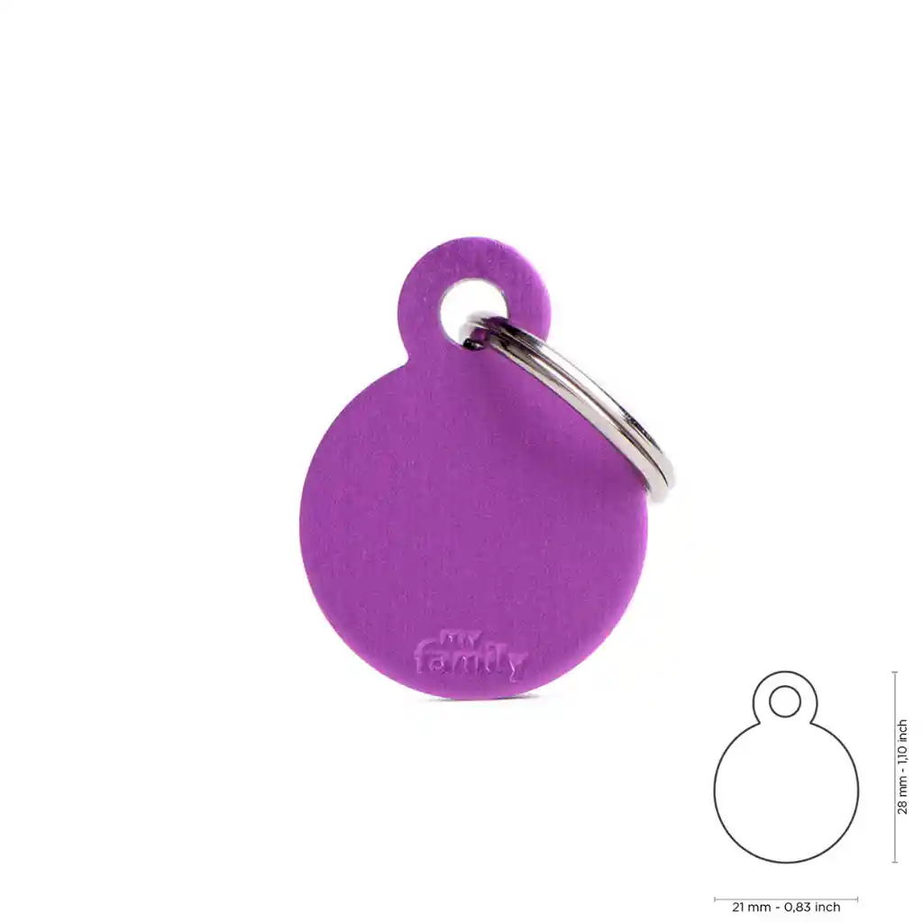Chapita My Family – Small Round Aluminum Purple le ayuda a mantener a su mascotita identificada. Las chapitas identificatorias son indispensables a la hora de encontrar a tu perro. Si no la tiene, nadie podrá ayudarlo a volver a casa Sin embargo si alguien quiere ayudar a un perro a regresar a casa, sólo lo puede hacer si el perro cuenta con su identificación.