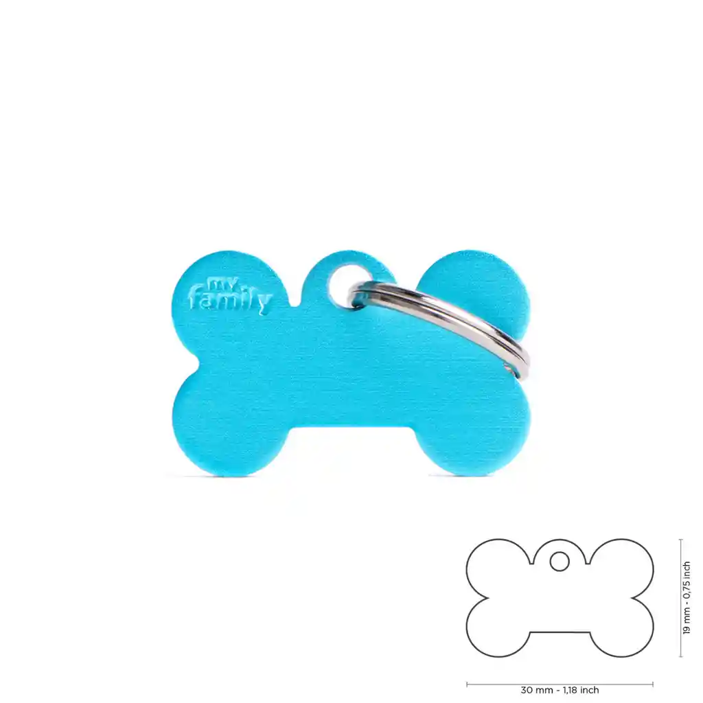 Chapita My Family – Small Bone Aluminum Light Blue le ayuda a mantener a su mascotita identificada. Las chapitas identificatorias son indispensables a la hora de encontrar a tu perro. Si no la tiene, nadie podrá ayudarlo a volver a casa Sin embargo si alguien quiere ayudar a un perro a regresar a casa, sólo lo puede hacer si el perro cuenta con su identificación.