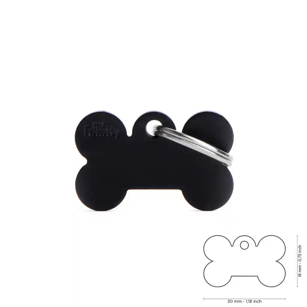 Chapita My Family – Small Bone Aluminum Black le ayuda a mantener a su mascotita identificada. Las chapitas identificatorias son indispensables a la hora de encontrar a tu perro. Si no la tiene, nadie podrá ayudarlo a volver a casa Sin embargo si alguien quiere ayudar a un perro a regresar a casa, sólo lo puede hacer si el perro cuenta con su identificación.