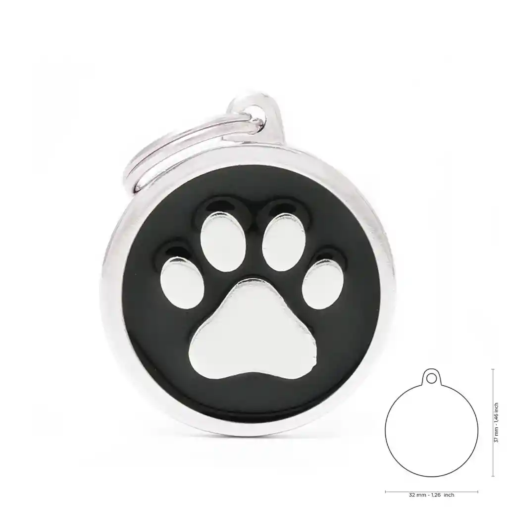 Chapita My Family – Black Big Circle Paw le ayuda a mantener a su mascotita identificada. Las chapitas identificatorias son indispensables a la hora de encontrar a tu perro. Si no la tiene, nadie podrá ayudarlo a volver a casa Sin embargo si alguien quiere ayudar a un perro a regresar a casa, sólo lo puede hacer si el perro cuenta con su identificación.