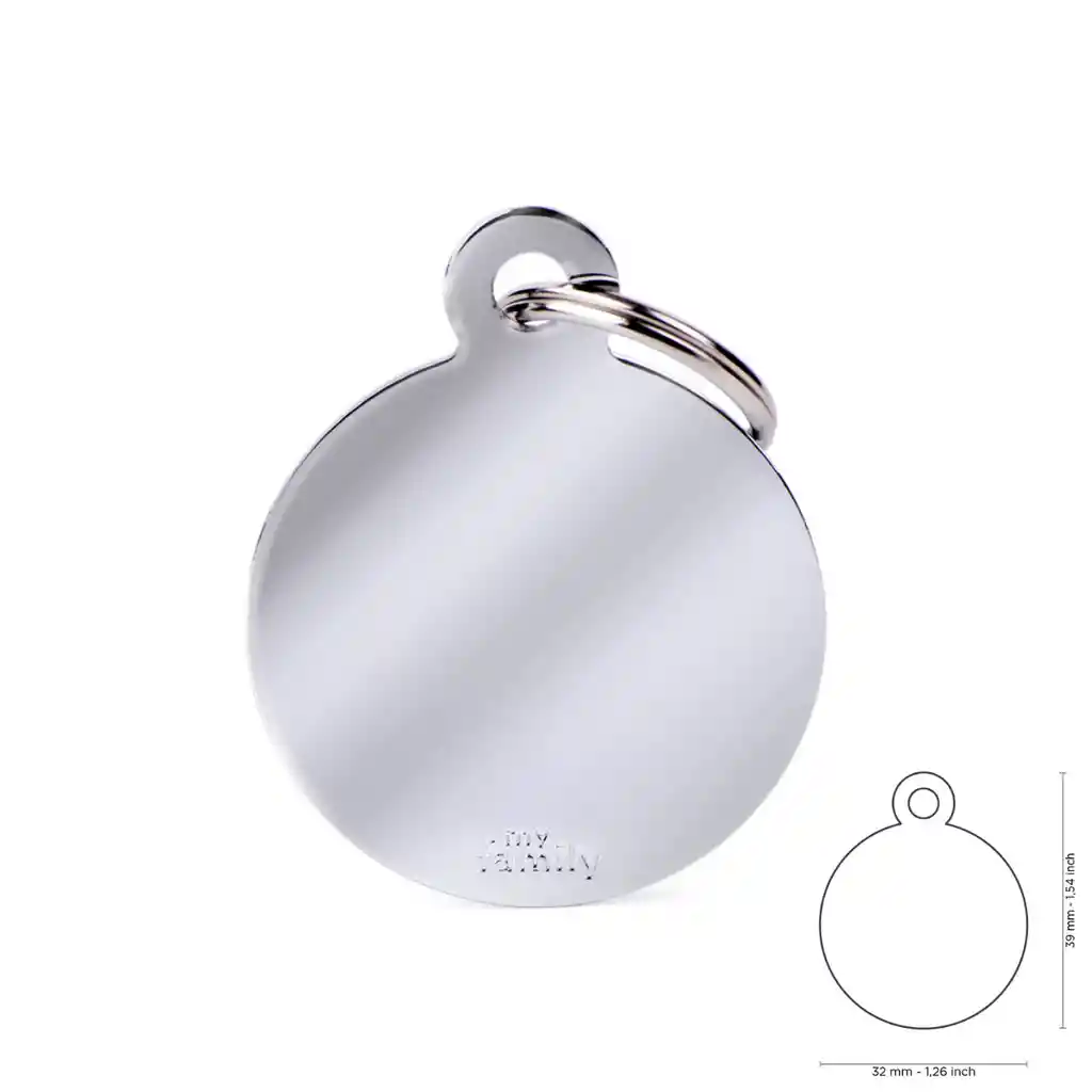 Chapita My Family – Big Round Chromed Brass le ayuda a mantener a su mascotita identificada. Las chapitas identificatorias son indispensables a la hora de encontrar a tu perro. Si no la tiene, nadie podrá ayudarlo a volver a casa Sin embargo si alguien quiere ayudar a un perro a regresar a casa, sólo lo puede hacer si el perro cuenta con su identificación