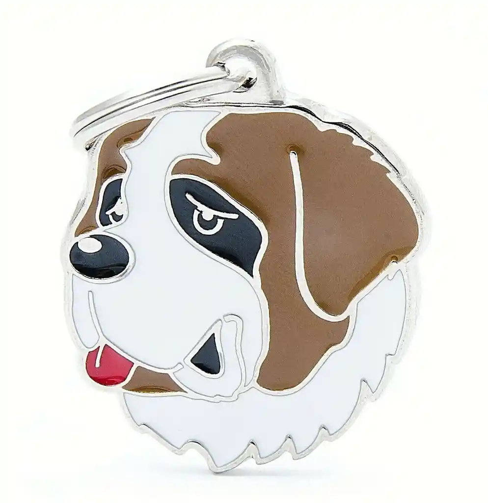 La plaquita st. bernard de la colección friends de my family, tiene un tamaño ideal para todo tipo de collar para perro. La placa de my family está elaborada de manera artesanal en Italia, hecha de metal y esmaltada a mano, con una profunda expresividad y similitud a esta famosa raza. Los perros san bernardo son tranquilos, amigables, tolerantes, cariñosos, aman a su familia y a los niños. La plaquita friends st. bernard logra captar su esencia de amor. ¿Te imaginas lo simpático que se vería tu lomito con una placa de identificación igual a él?