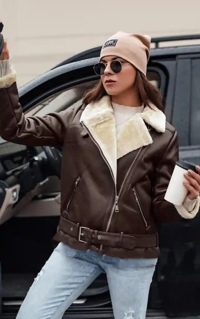 Chaqueta Café con Chiporro Beige Mujer Abrigo Invierno Chaqueta café con interior de chiporro beige para mujer, abrigada, cómoda y perfecta para el invierno. Descripción de producto: Esta chaqueta café para mujer cuenta con interior de chiporro beige suave y cálido, ideal para protegerse del frío sin perder estilo. Su diseño combina practicidad y confort, con cierre frontal y bolsillos funcionales que aportan comodidad. Perfecta para días fríos, paseos al aire libre o actividades cotidianas, ofreciendo un look casual, femenino y atemporal. El contraste entre el tono café exterior y el chiporro beige interior añade un detalle visual atractivo y versátil para múltiples combinaciones. Atributos técnicos: Color exterior: café Interior de chiporro beige Cierre frontal Bolsillos laterales funcionales Diseño cálido y confortable Material exterior resistente Forro interior suave y abrigado Ideal para otoño e invierno