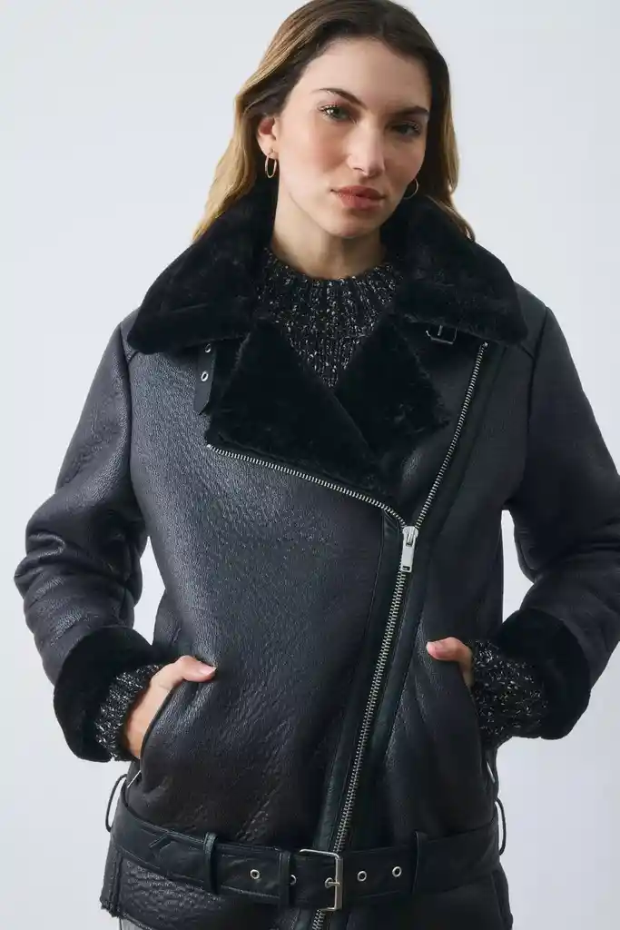 Descripción larga: La chaqueta aviadora negra oversize es la prenda estrella del invierno 2025. Inspirada en el diseño clásico de piloto militar, esta versión moderna ofrece estilo, comodidad y abrigo, convirtiéndose en el complemento perfecto para tu outfit urbano. Su cuello tipo borrego desmontable, cierre metálico y forro interior acolchado garantizan un look poderoso y funcional. Confeccionada para resistir bajas temperaturas, esta chaqueta negra para mujer y hombre se adapta a distintos estilos, desde el streetwear hasta lo elegante-casual. Ideal para combinar con jeans, botas o zapatillas chunky. Versátil, cálida y con actitud. Características: •Diseño unisex, oversize •Cierre frontal metálico •Forro acolchado interior •Bolsillos frontales amplios •Material resistente al frío •Color: Negro mate •Tallas disponibles: XS, S, M, L, XL •Uso: Otoño e Invierno