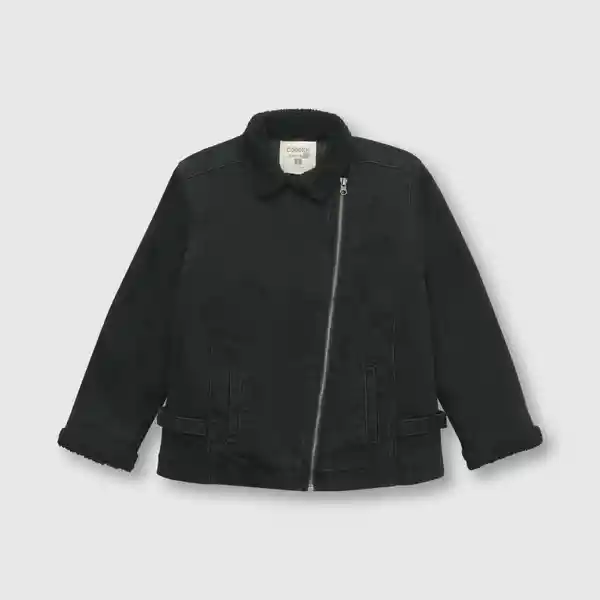 Chaqueta de Mezclilla Estilo Biker Con Desgaste de Procesos y Forro Peludo.
