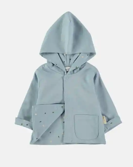 · Hecho de algodón Pima · Tallas de 0-3 a 9-12 meses Chaqueta de niño o niña con capucha, broches en el pecho y doble capa de algodón . Su diseño reversible permite llevarla por el lado en color liso o por el otro estampado