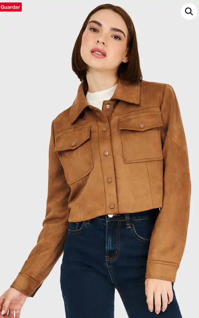Descripción Producto: Tipo de Producto: Chaqueta Material: 95% Poliéster y 5% Spandex Tejido: Tipo gamuza Tipo de cuello: Camisero Calce: Regular Características: Chaqueta corta tipo gamuza. Broches en puños y en cierre frontal. Cuello tipo camisero. Bolsillos cargo con broches de ajuste. Posee forro. Ocasión: Casual La talla XL mide: Espalda 44 cm Busto 119 cm Largo de manga 66 cm Largo total 49 cm.