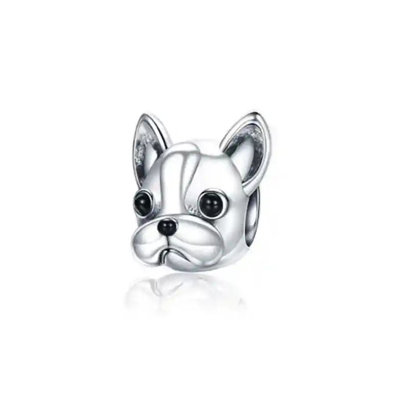 CHARM CARITA BULLDOG FRANCES Hermoso charm con forma de carita de bulldog frances, fabricado en plata 925 de primera ley y cristales, 100% compatible con pulseras de charm.