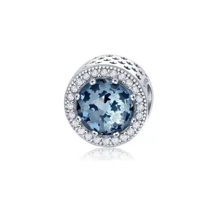 El charm está hecho de Plata esterlina 925 con su respectivo sello. Existe en colores: celeste Es totalmente compatible con pulseras Pandora y cualquieras otras marcas europeas.