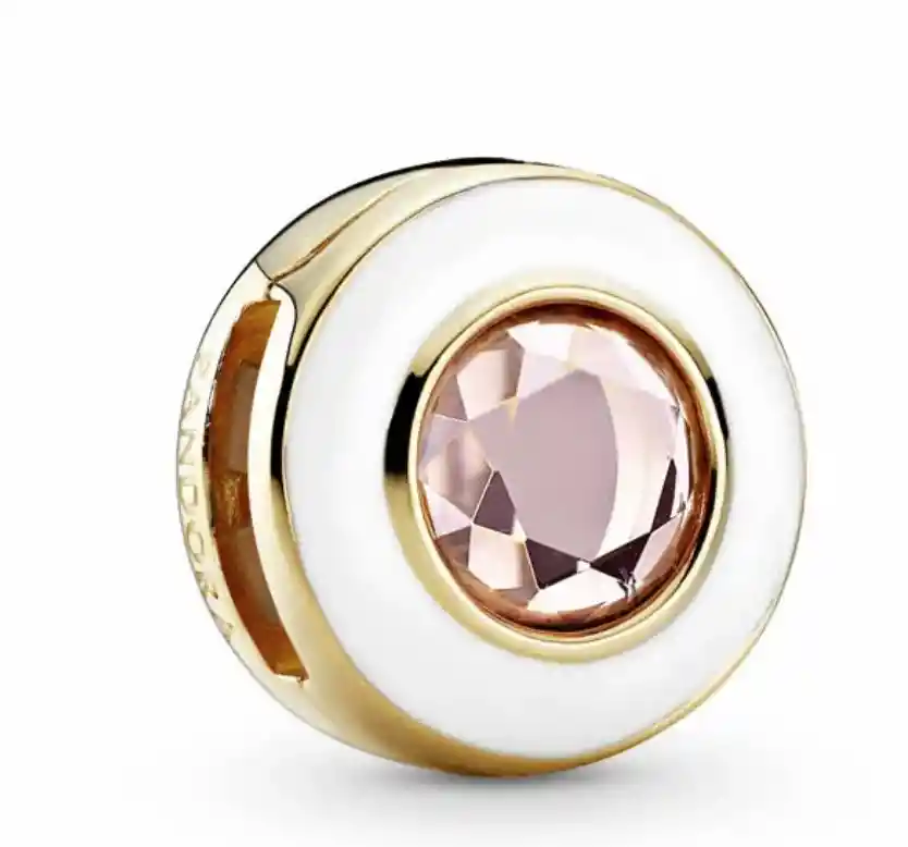 El charm está hecho de Plata esterlina 925 con su respectivo sello. Está incrustado de Cristal. Existe en colores: blanco y rosado. Es totalmente compatible con pulseras Pandora y cualquieras otras marcas europeas.
