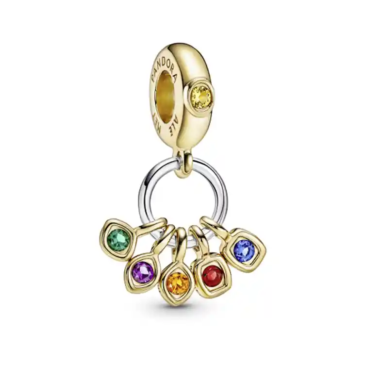 El charm está hecho de con su respectivo sello Es totalmente compatible con pulseras Pandora y cualquieras otras marcas europeas. úCharm Colgante Gemas del Infinito adornado con circonitas cúbicas de diferentes colores y grabado "Time, Power, Soul, Reality, Space"