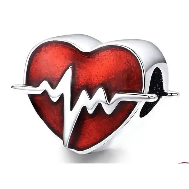 CHARM CORAZON ROJO Hermoso charm con forma de corazón rojo con pulsaciones, fabricado en plata 925 de primera ley y cristales, 100% compatible con pulseras de charm.