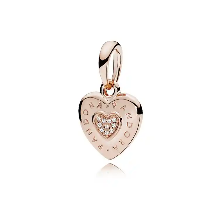 El charm está hecho de Plata esterlina rose con su respectivo sello. Está incrustado de Zirconia cúbica Es totalmente compatible con pulseras Pandora y cualquieras otras marcas europeas.