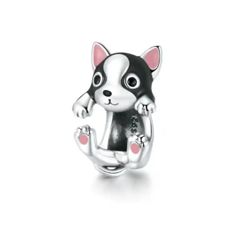 El charm está hecho de Plata esterlina 925 con su respectivo sello. Existe en colores: negro.