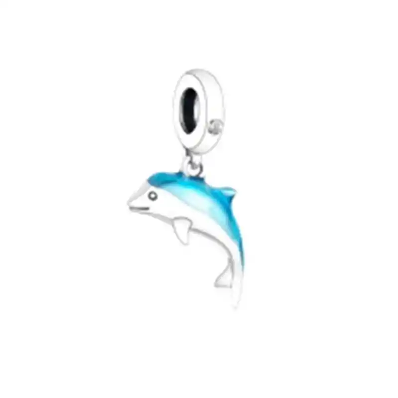 CHARM DELFIN Hermoso charm con forma de delfín fabricado en plata 925 de primera ley y cristales, 100% compatible con pulseras de charm.