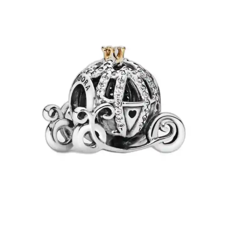Charm Carroza de Cenicienta en plata 925, adornado con circonitas cúbicas transparentes.