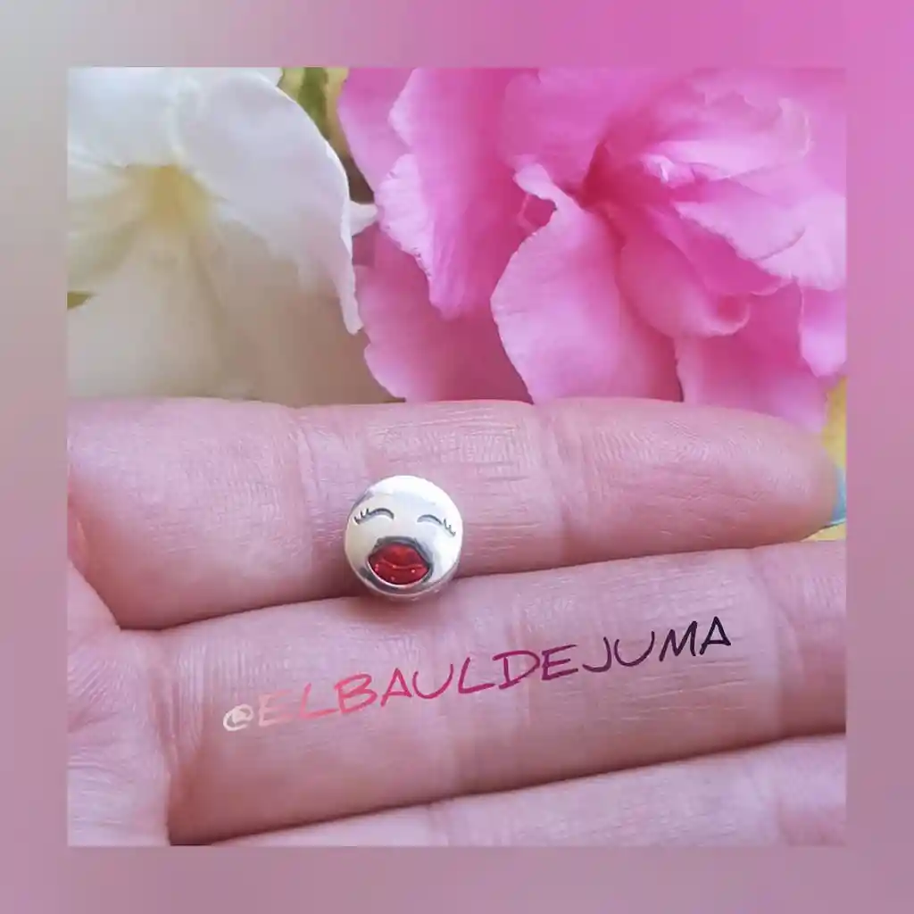 Charm Dije Abalorio Carita Ojitos Cerrados Boca Roja Plata 925