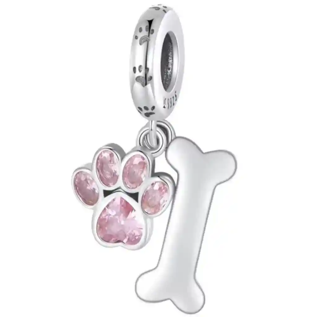 Celebra el amor por tu mejor amigo con este delicado charm en plata 925. Su diseño combina una huella de mascota con un pequeño huesito adornado con circones brillantes, que simbolizan la fidelidad, alegría y compañía de los perritos. Especificaciones: - Material: Plata Ley 925 - Color: Rosa - Medida: 25mmx9mm - Compatibilidad: Pulseras tipo Pandora o collar - Estilo: Animal Lover / Tierno / Moderno - Presentación: incluye caja elegante, ideal para regalar. - Estilo: Elegante. PULSERA NO INCLUIDA