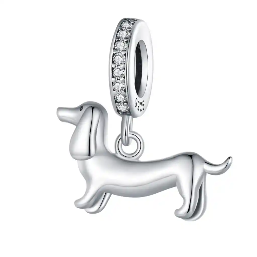 Adorable charm con diseño de perrito salchicha, elaborado en plata 925, perfecto para los amantes de esta simpática raza. Un detalle lleno de personalidad y cariño, ideal para pulseras o collares tipo Pandora. ¡Lleva contigo el amor incondicional de tu mejor amigo peludo! Especificaciones: - Material: Plata Ley 925 - Medidas: 1.7cm - Dije: 1cmx1.6cm - Color: Plata - Presentación: incluye caja elegante, ideal para regalar. - Estilo: Elegante. *No Incluye Pulsera*