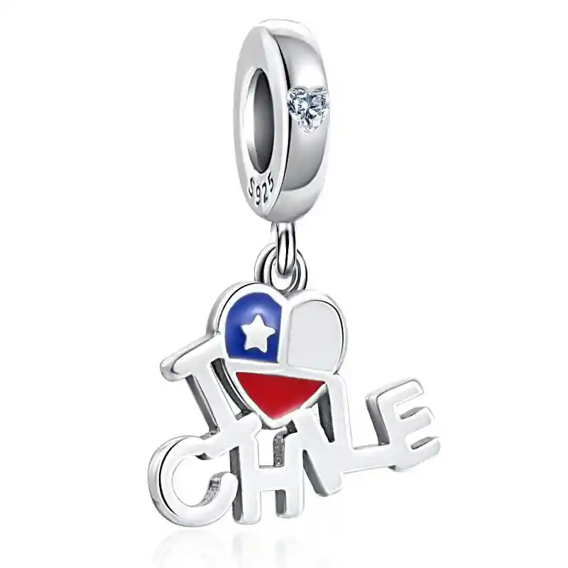 Hermoso Charm colgante con forma de Amo a Chile (I Love Chile) y decorado con hermosos circones de calidad , fabricado en plata 925, excelente calidad y finas terminaciones, incluimos de regalo elegante cajita de cartón totalmente gratis con su compra. *No incluye cadena o pulsera* Especificaciones: Modelo: Amo a Chile Código: 0975 Medida del charm: 20x10mm Peso: 2gr +/- Material: Plata 925 Marca: Charmia