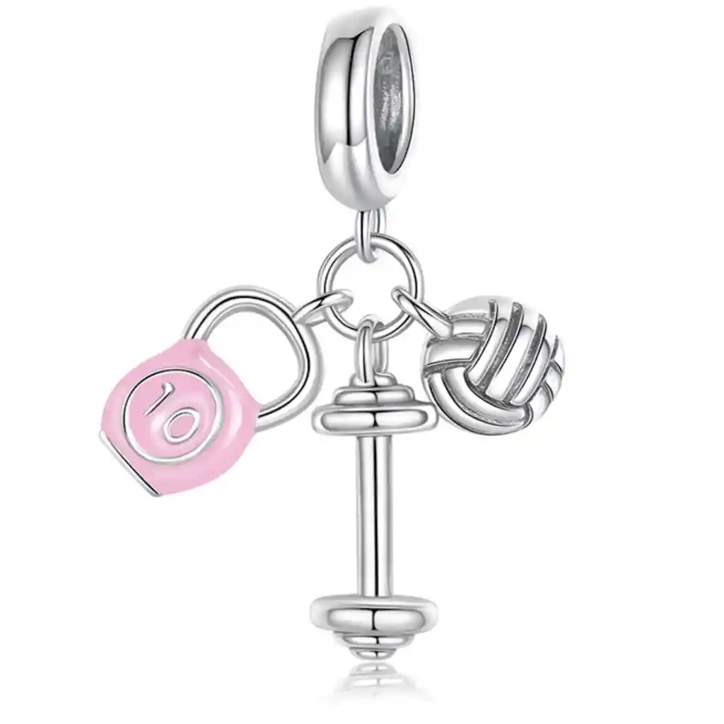 Este charm de plata 925 celebra la pasión por el deporte y el fitness . Con un diseño único que combina pelota de vóleibol, pesa y mancuerna, es el accesorio perfecto para quienes disfrutan mantenerse activos y llevar su estilo deportivo también en sus joyas. Compatible con pulseras tipo Pandora o collar, es un regalo original para amantes del gimnasio, atletas y deportistas. Especificaciones: - Material: Plata Ley 925 - Color: Plateado - Medida: 2.3cmx1.5cm - Compatibilidad: Pulseras tipo Pandora o collar - Estilo: Deportivo / Fitness / Casual - Presentación: incluye caja elegante, ideal para regalar. - Estilo: Elegante. PULSERA NO INCLUIDA
