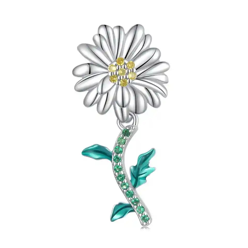 Descripción: Hermoso, elegante y exclusivo Charm con forma de Margarita Daisy Flower, decorado con hermosos circones de alta calidad y brillo, fabricado en plata 925 excelente calidad y finas terminaciones, incluimos de regalo elegante cajita de regalo estándar totalmente gratis con su compra. *No incluye cadena o pulsera* Especificaciones: Modelo: Margarita Daisy Flower Código: 1059 Medida del Charm: 25x12mm +/- Peso: 1.2 gr +/- Material: Plata 925 Marca: Charmia