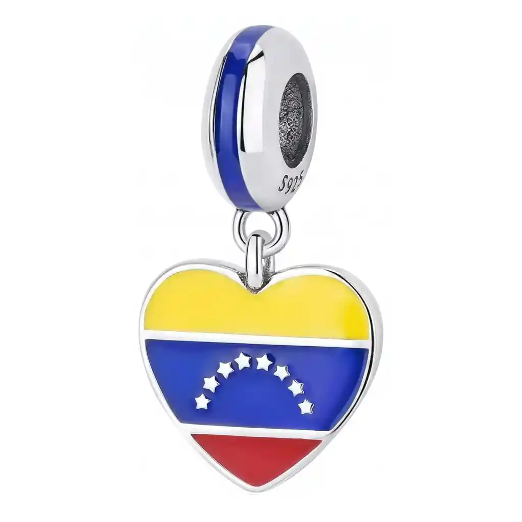Hermoso y elegante charm con diseño de corazón inspirado en la bandera de Venezuela, ideal para representar el amor por tus raíces y llevar siempre contigo un símbolo de identidad y orgullo. Fabricado en plata ley 925 de alta calidad, este dije ofrece excelente brillo, resistencia y durabilidad, manteniendo su belleza con el uso diario. La plata 925 contiene 92,5% de plata pura, siendo el estándar más utilizado en joyería fina por su equilibrio entre elegancia y firmeza. Su diseño delicado y significativo lo convierte en un regalo perfecto para familiares, amigos o para quienes desean expresar su conexión con Venezuela de forma elegante y simbólica. Compatible con la mayoría de las pulseras tipo charm del mercado. Incluimos de regalo elegante cajita de cartón para joyas, ideal para obsequio. ** No incluye pulsera o cadena ** Características: Modelo: Corazón Bandera Venezuela SKU: 1190 Medida del charm: 21x12 mm +/- Peso: 1.8 gr +/- Material: Plata 925 Marca: Todojoyas
