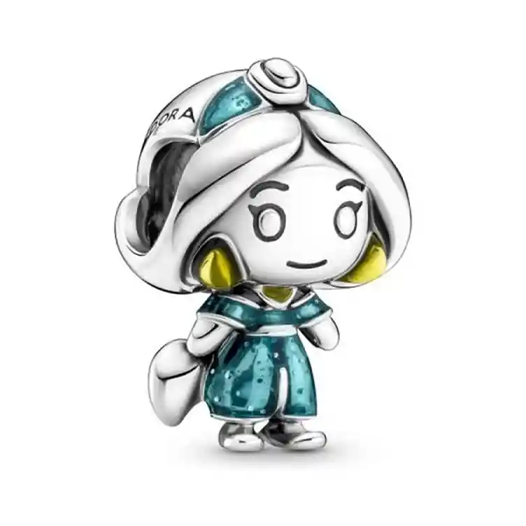 Charm Disney Princesa Jasmine con detalles en verde y amarillo plata 925